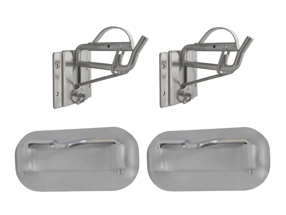 Rockboat heavy duty vertical snap davits are used for attaching your inflatable boat to the swim platform which makes it easier and safer, to both mount the outboard motor and also to board the inflatable. The grey rubber pads glue onto the inflatable and the brackets bolt onto the platform. When ready to get underway you simply unhinge it from the davit head and you are free. When returning simply hinge the inflatable back on and the boat can now be swung up out of the water for transport.