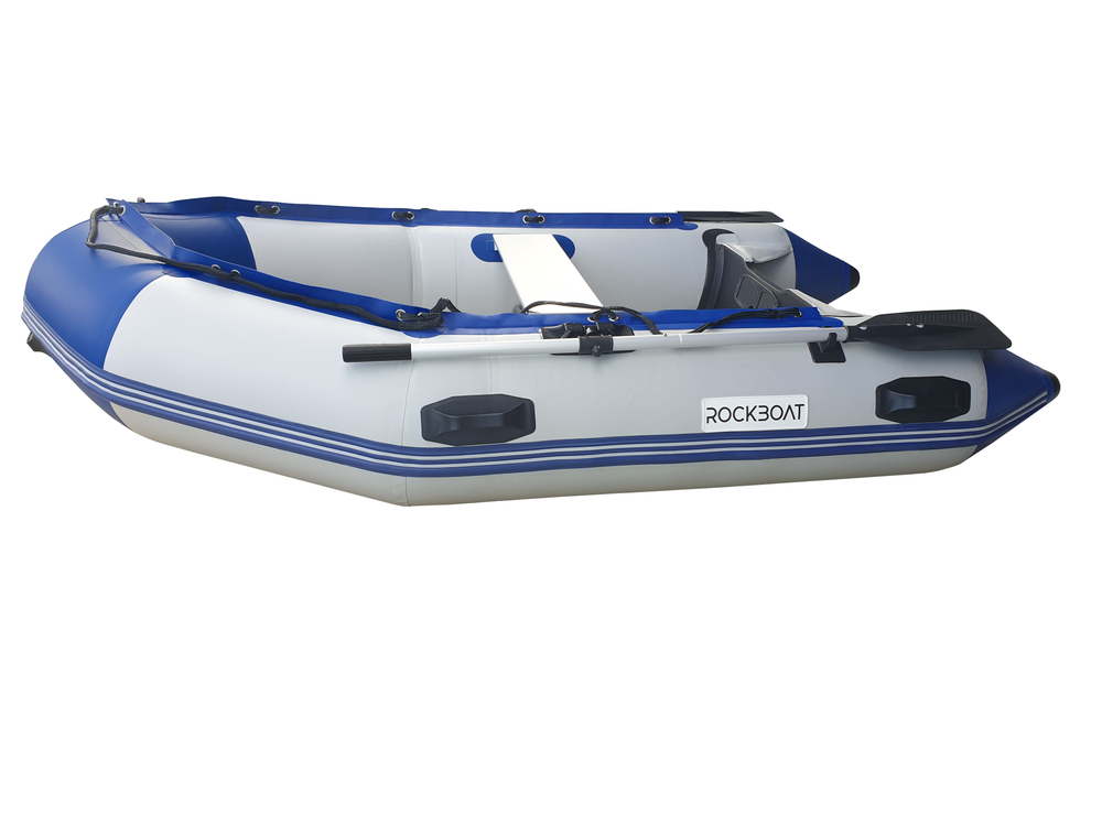 Rockboat® sport inflatable boats are made from 0.9mm layered PVC and a super strong 1100 DTEX polyester base which provides excellent resistance to tearing, is flexible and airtight. The PVC not only offers great abrasion resistance but also has a smooth outside surface which helps the boat to glide over the water.