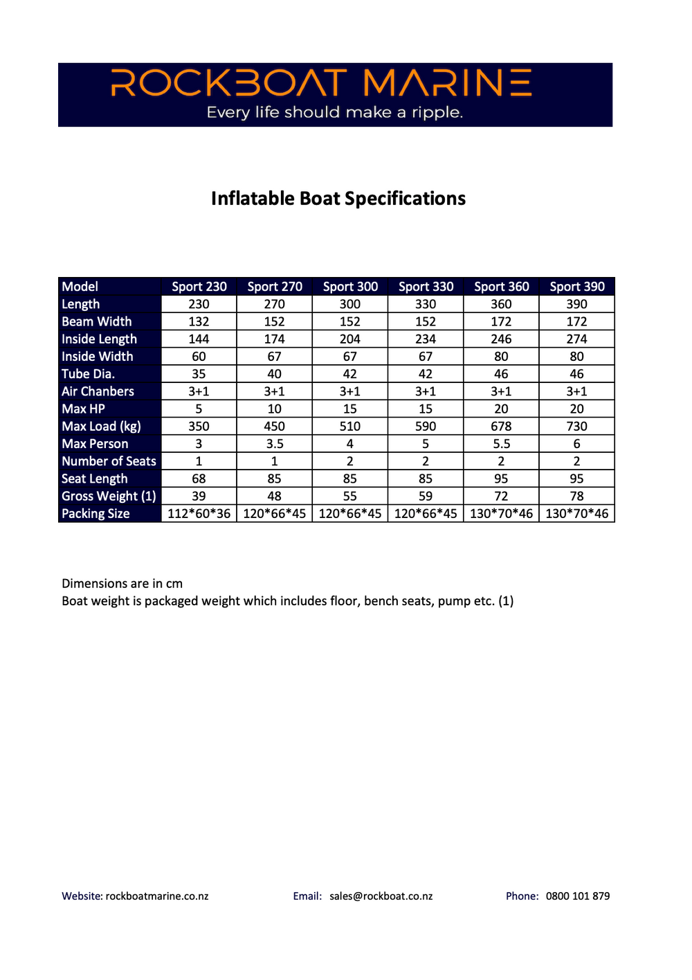 Click here for Inflatable Boat Specifications
