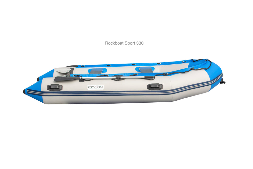 Rockboat® sport inflatable boats are made from 0.9mm layered PVC and a super strong 1100 DTEX polyester base which provides excellent resistance to tearing, is flexible and airtight. The PVC not only offers great abrasion resistance but also has a smooth outside surface which helps the boat to glide over the water.