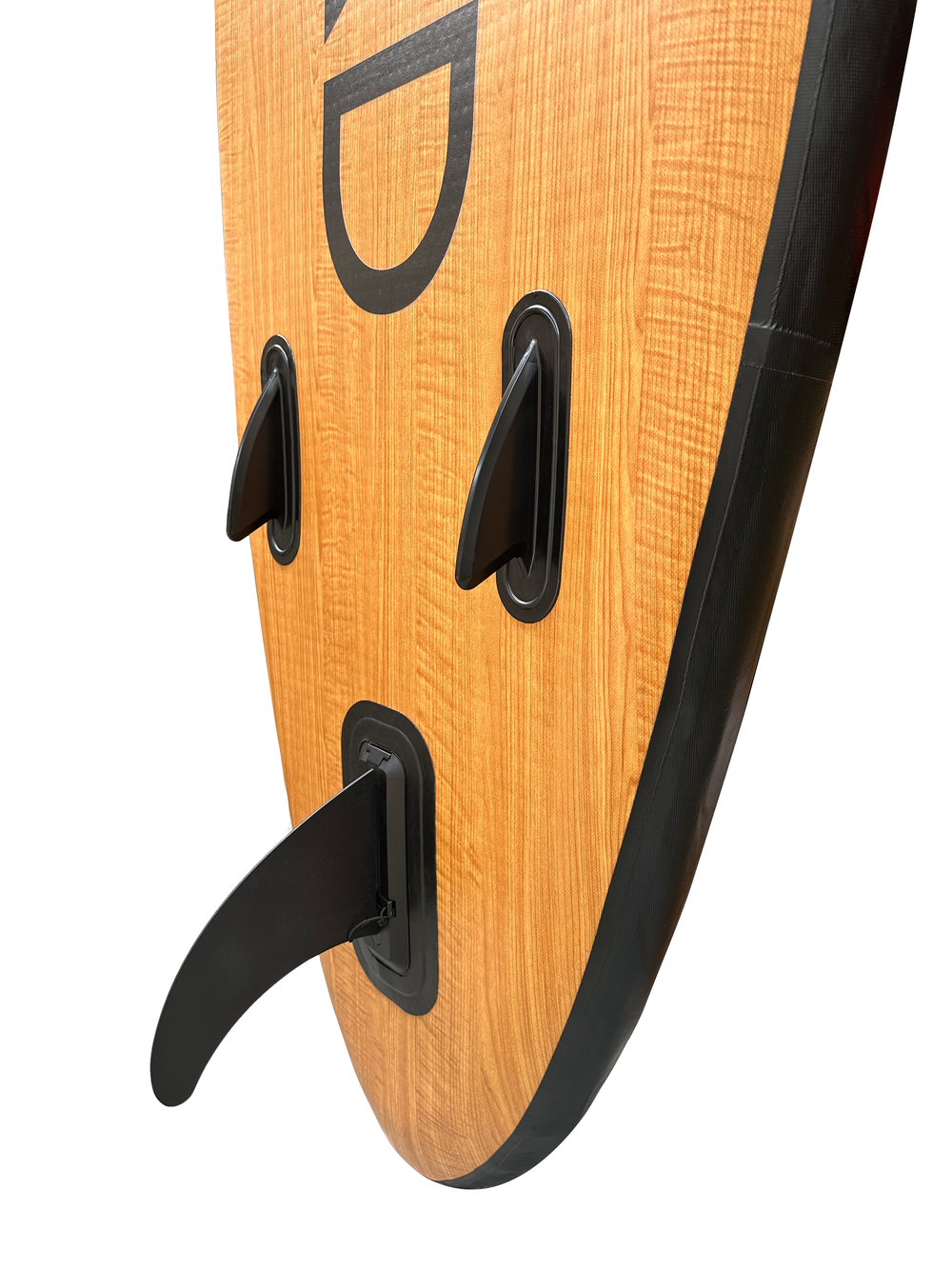 - Tri-Fin design with two molded plastic/flexible side fins and one center (removable) Fin for directional stability