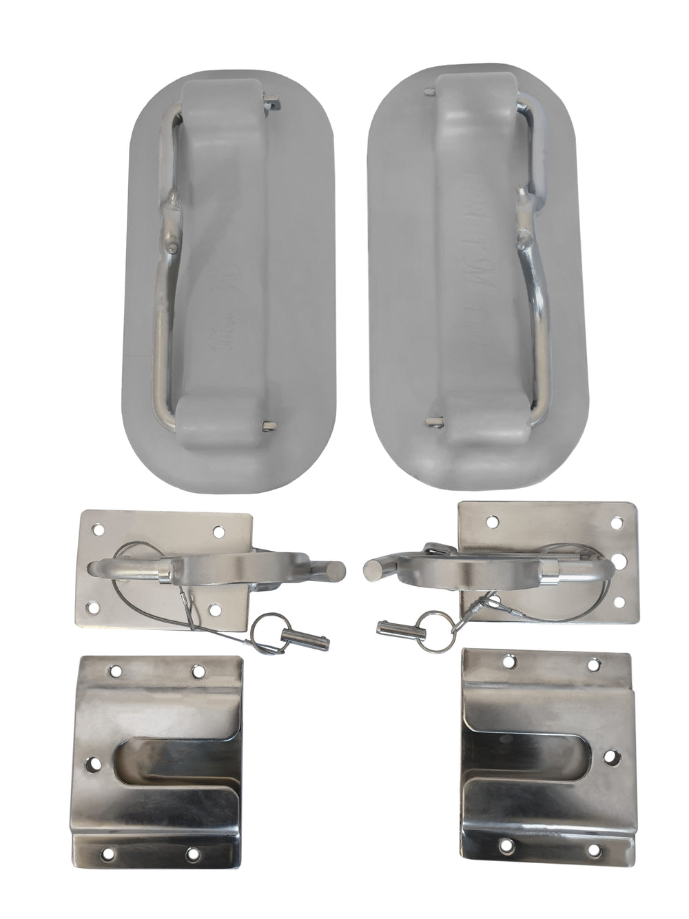 *     2 x Quick removal plates and pins stainless steel. The plates are fixed onto the platform and the davit heads slide into them and are locked with the pin. When not in use remove the davit head and all that's left behind is the plate.